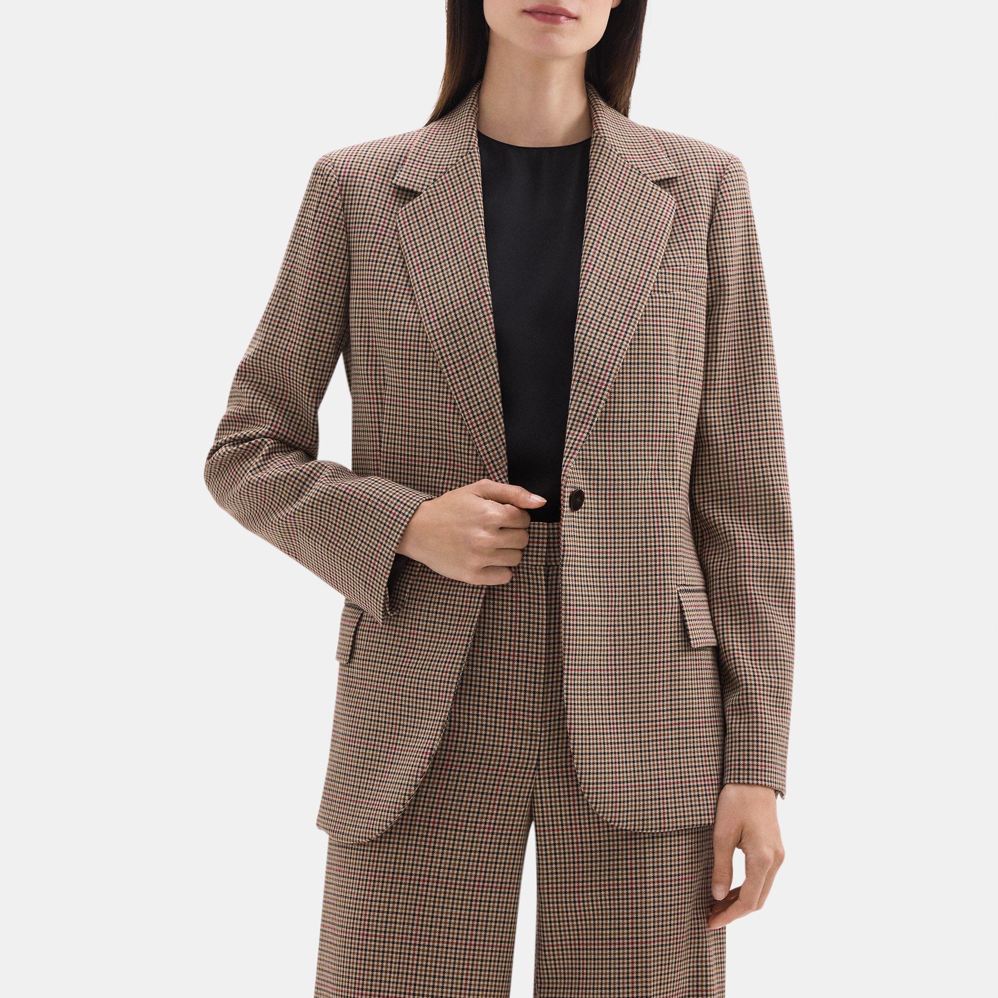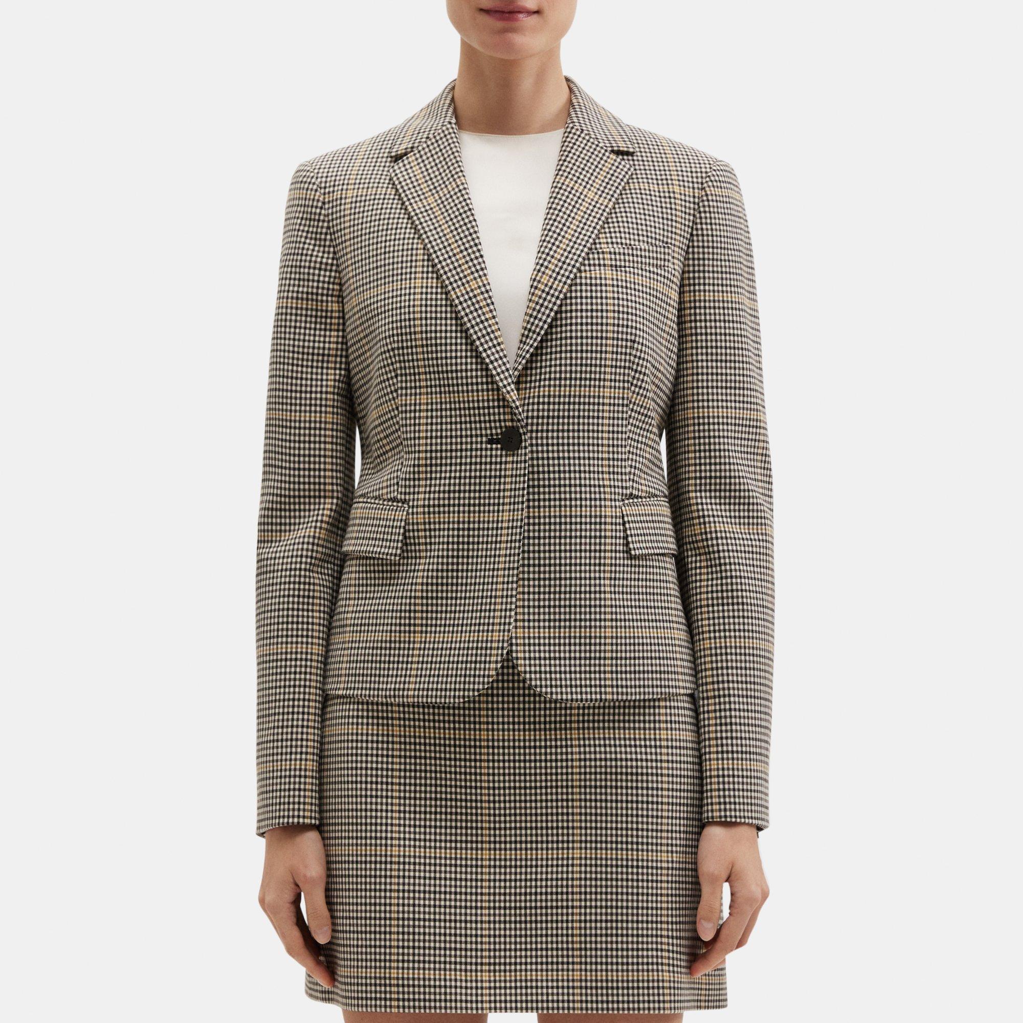 Checked Wool Blend Fitted Blazer Theory Very well made.