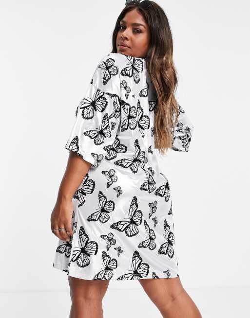 Daisy Street Plus Robe moulante courte a col montant avec imprime papillon style annees 2000 ASOS Very well made.