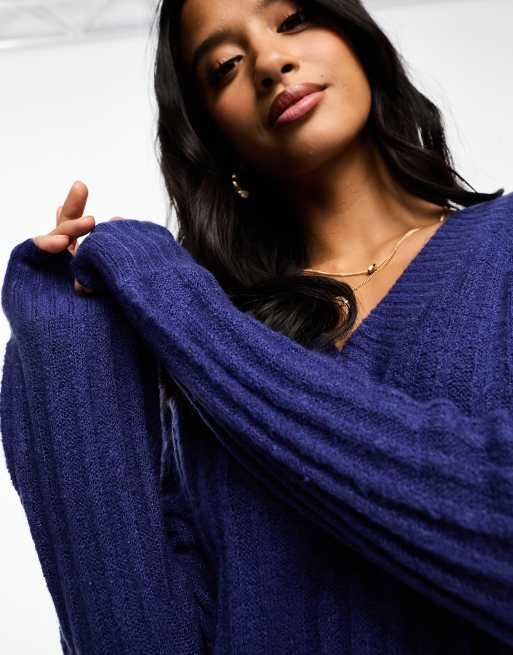 Threadbare Petite Bella v neck ribbed midi jumper dress in navy ASOS Very well made.