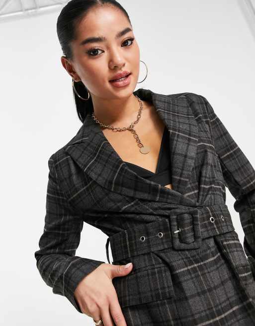 4th Reckless Petite belted blazer co ord in dark check ASOS Very well made.