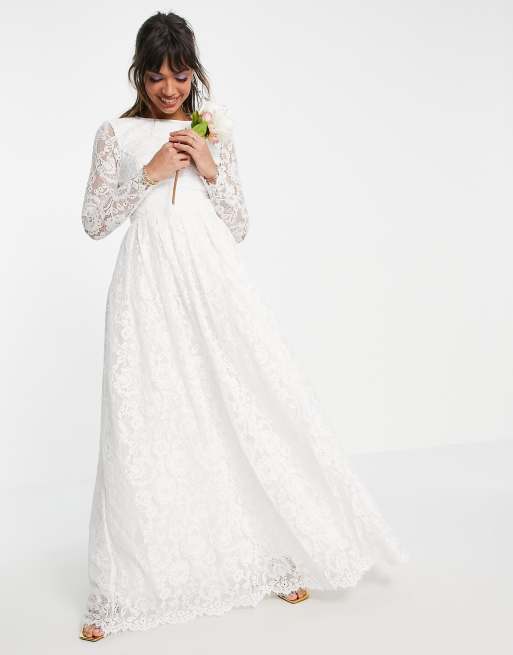 Vestido de novia de manga larga con espalda al aire de encaje Odette de ASOS Edition Very well made.