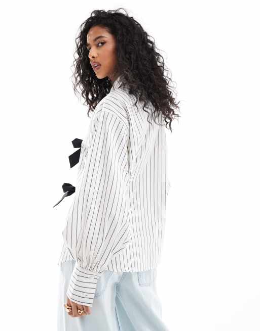 Camisa negra y blanca a rayas con detalle de lazo de ASOS DESIGN ASOS Very well made.