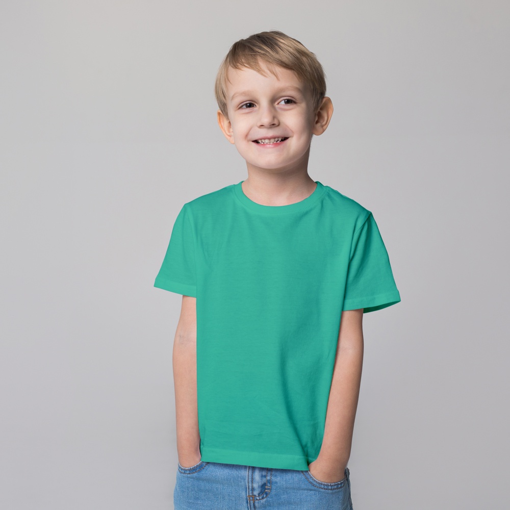 Camiseta Infantil Unissex Manga Curta de Algodao Verde Jade Very well made.