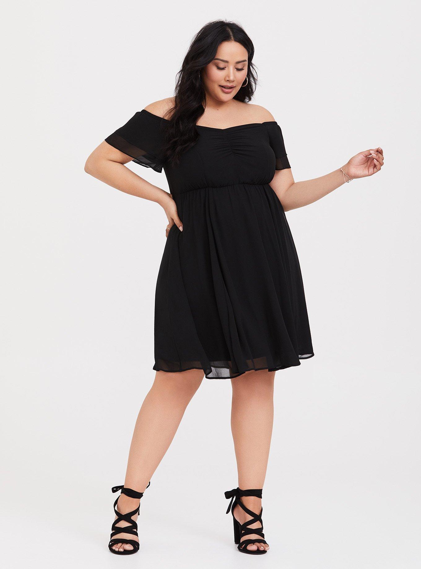 Plus Size Black Chiffon Off Shoulder Skater Dress Torrid Very well made.