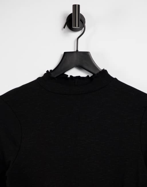 ASOS DESIGN Tall turtleneck crop top with lettuce edge in black Very well made.