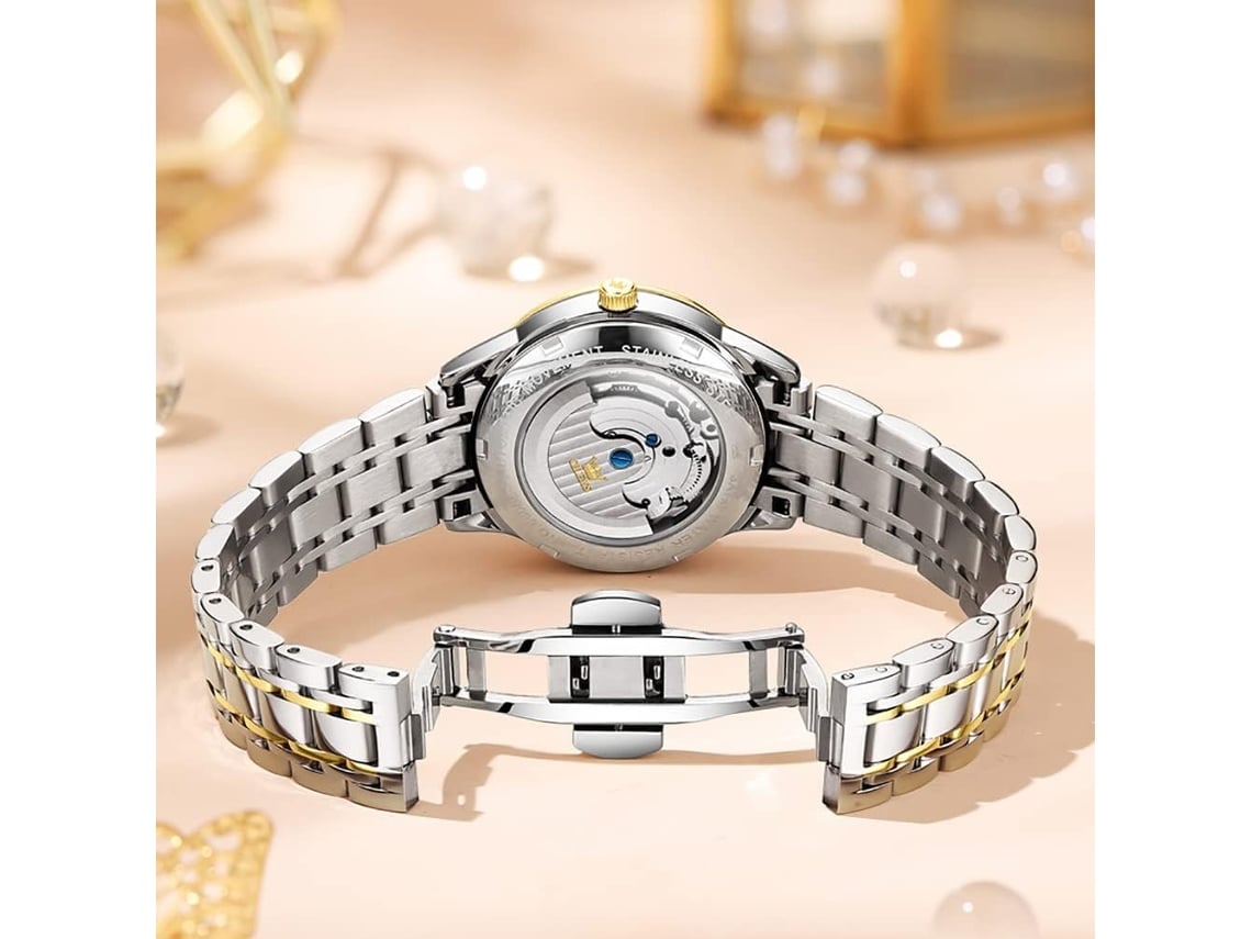 VEANXIN Reloj mecanico delgado impermeable de acero inoxidable dorado y plateado automatico para mujer Oro y plata Worten.es Very well made.