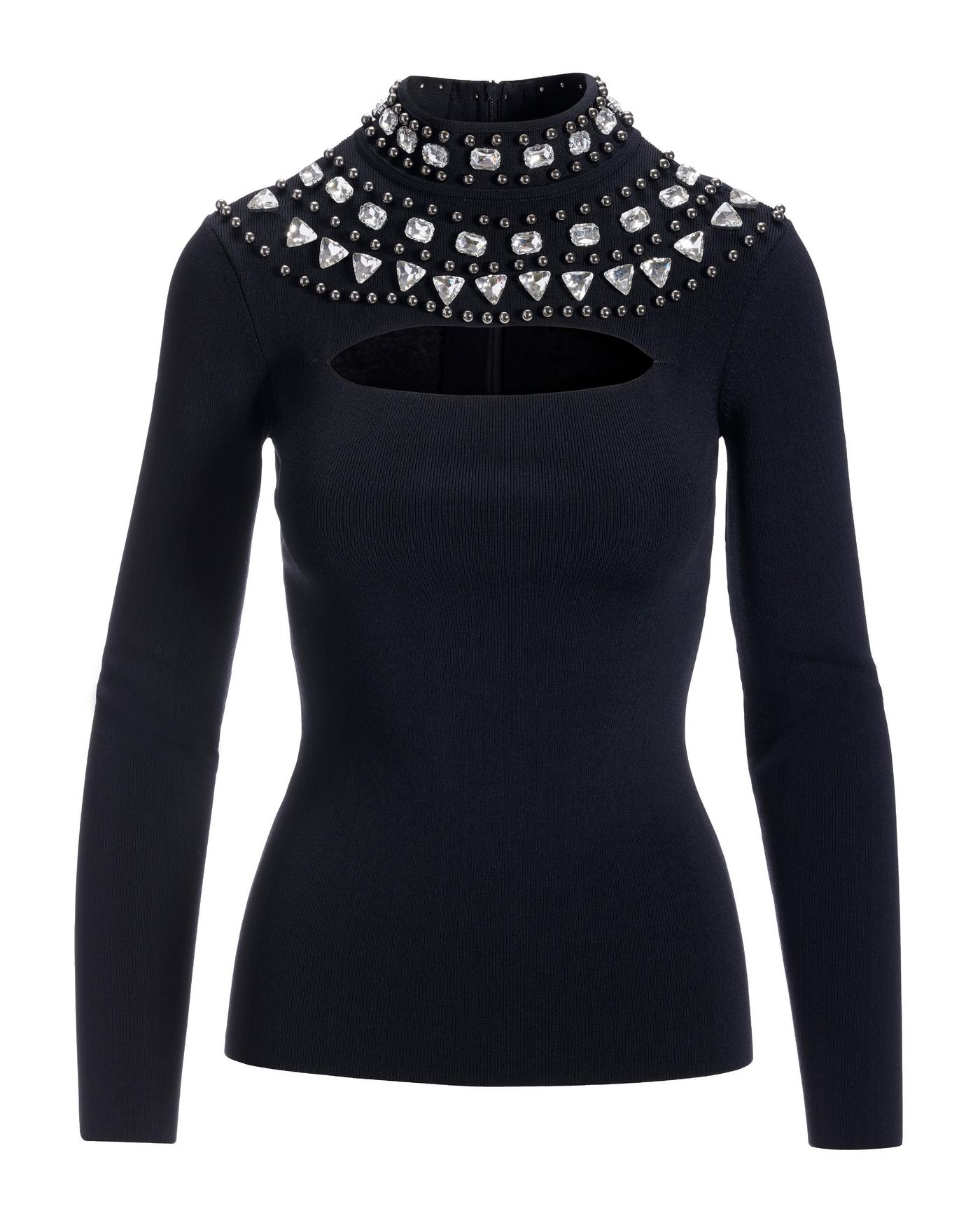 Rhinestone Mock Neck Cut Out Sweater Black Very well made.