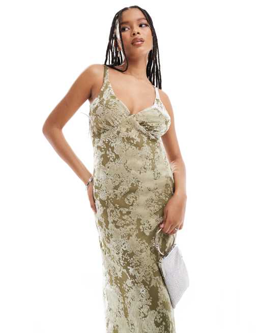 Mango Robe longue en velours effet devore Vert ASOS Very well made.
