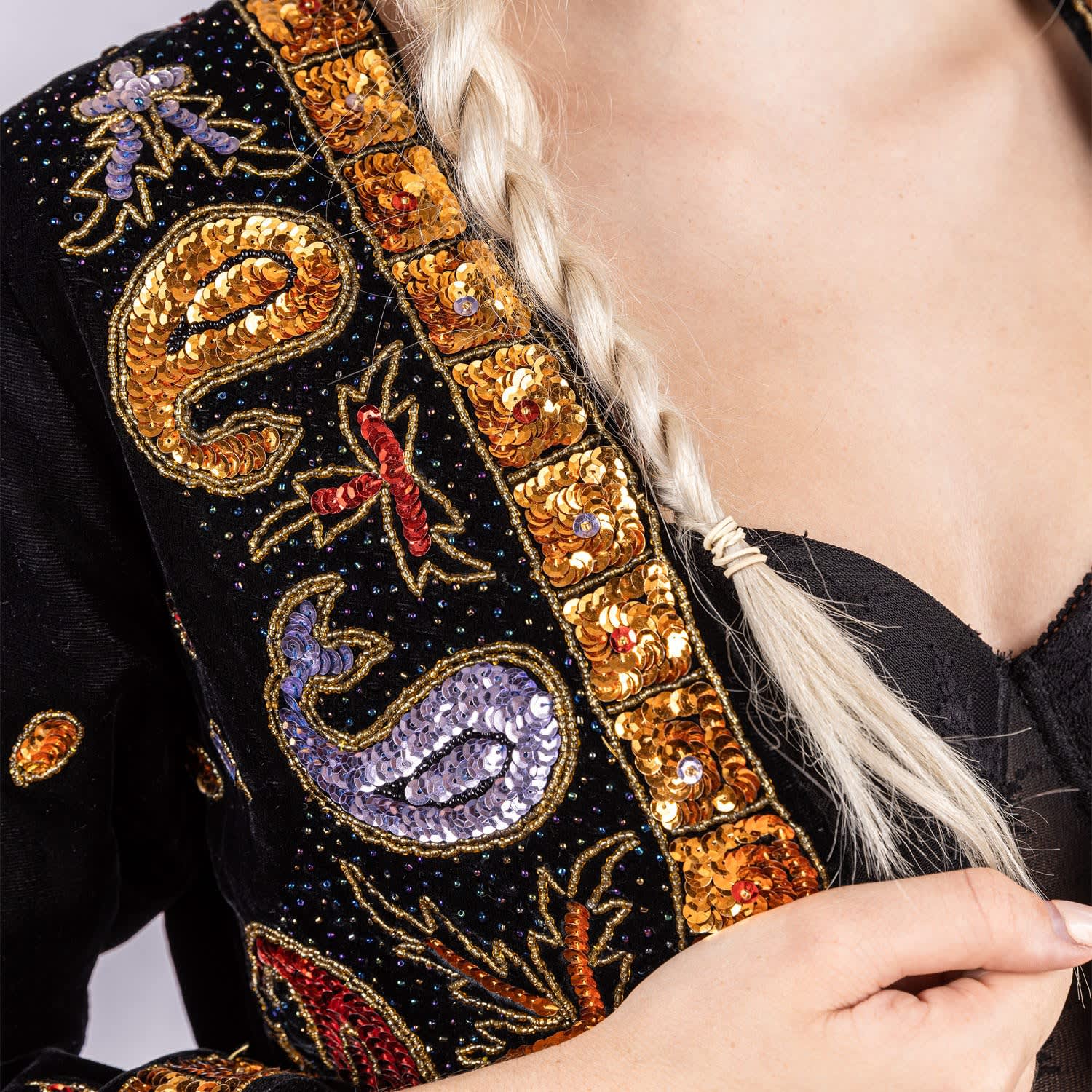 Women s Gold Black Psalm Black Velvet Bolero With Sequins And Sparkling Droplets Small Harlow Loves Daisy Very well made.