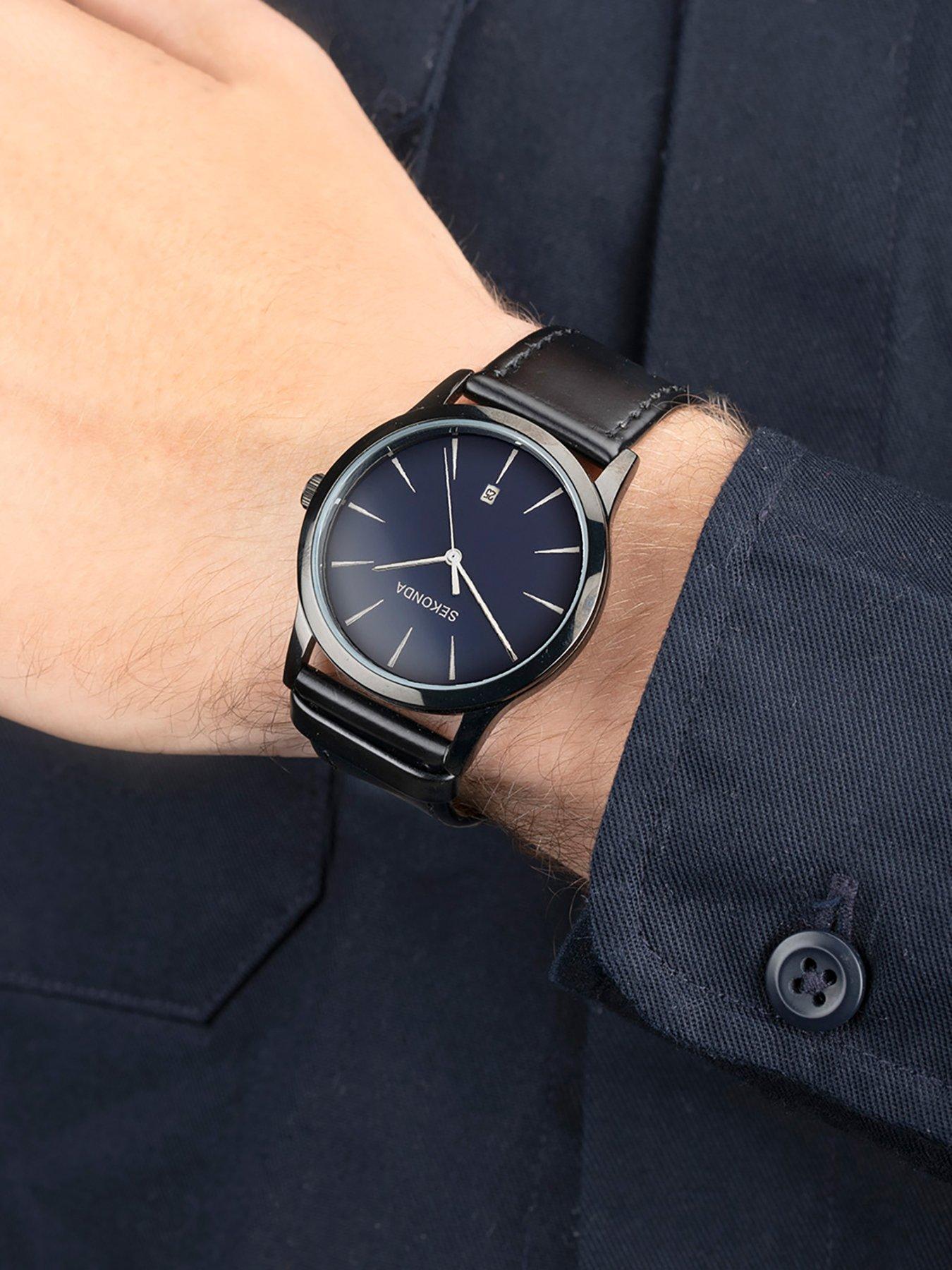 Sekonda Men s Oslo Black Leather Strap with Blue Dial Watch Very well made.