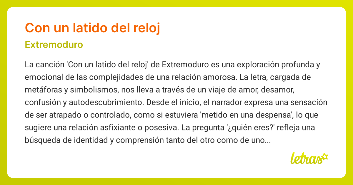 Significado de la cancion CON UN LATIDO DEL RELOJ Extremoduro LETRAS.COM Very well made.