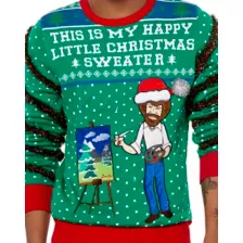 Light Up Bob Ross Happy Little Christmas Ugly Christmas Sweater Spencer s Very well made.