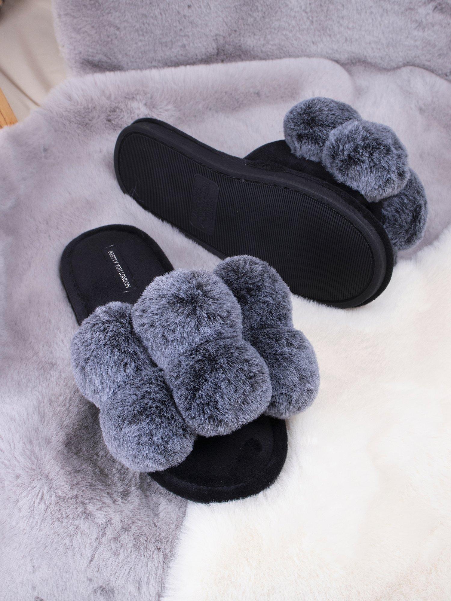 Pretty You London Dolly Pom Pom Slippers Black Very well made.