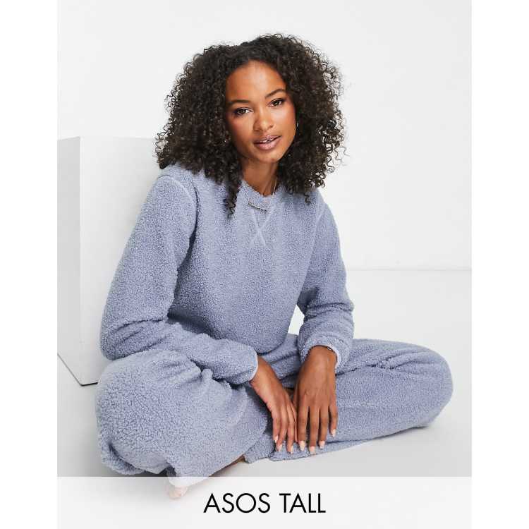 ASOS DESIGN Tall lounge borg sweatshirt pants set in dusky blue ASOS Very well made.
