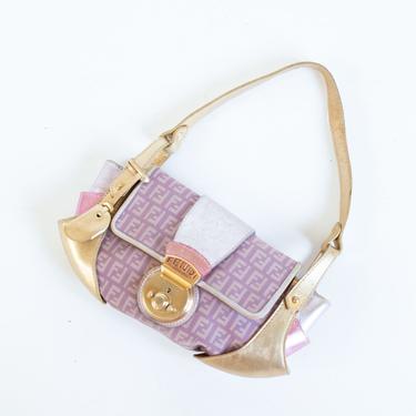 Vintage FENDI Borsa Tuc Zucchino Jacquard Baguette Bag in Pink Backroom Clothing Los Angeles CA Very well made.