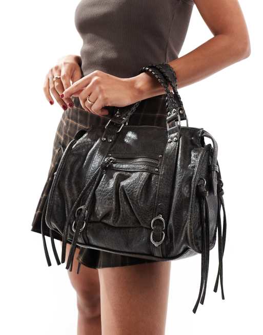 Bershka Borsa a mano in pelle sintetica nero slavato con nappe ASOS Very well made.