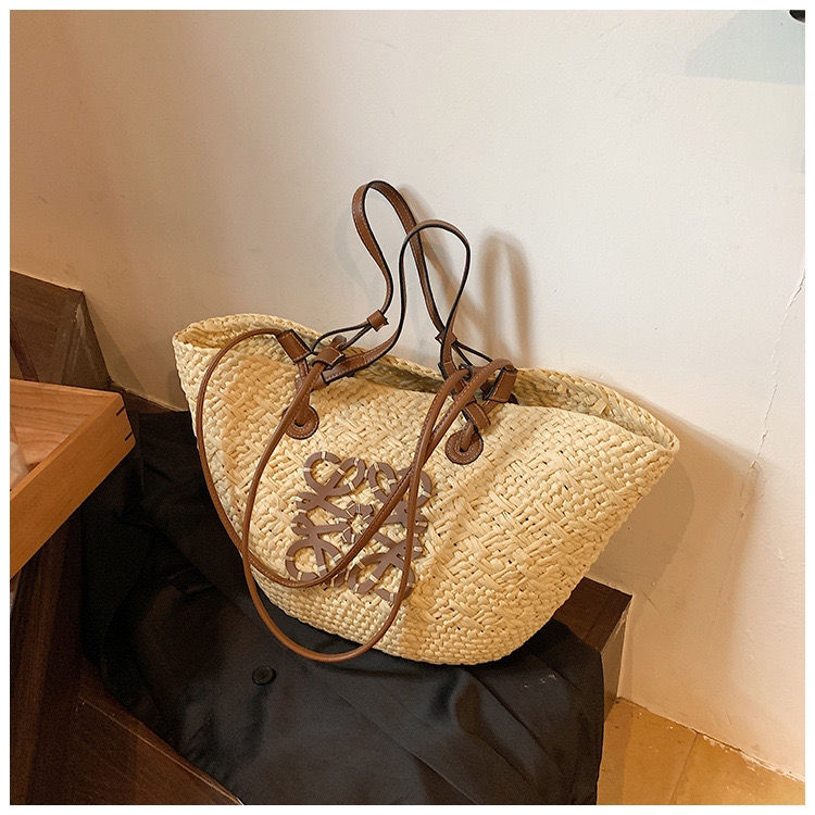 Bolsa de paja loewe nuevo estilo bolso de hombro playa tejido paja bolsa Simple ocio vacaciones viaje bolsa Shopee Chile Very well made.