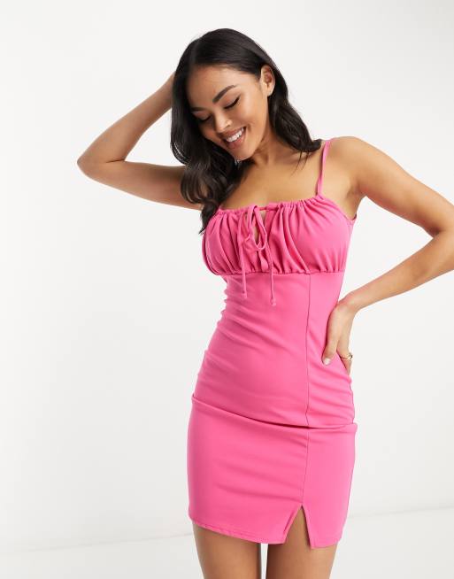Bright Pink Gathered Bust Mini Dress Very well made.