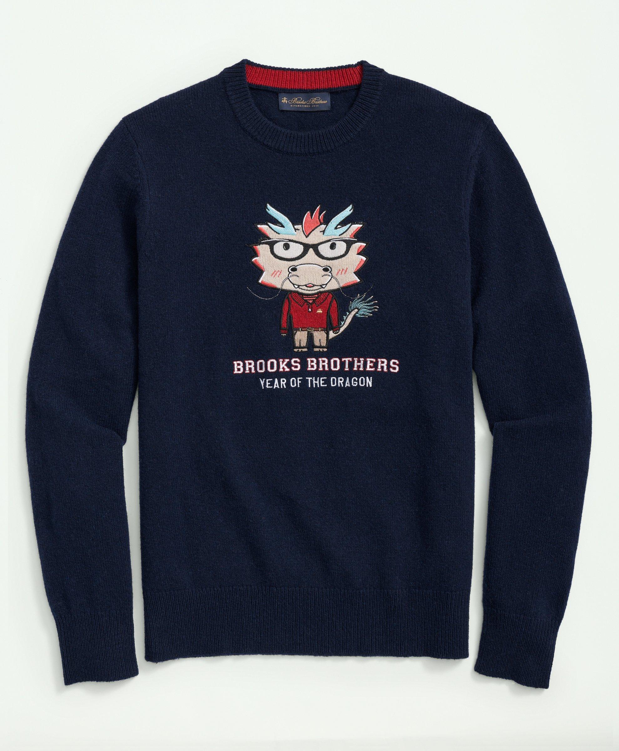 Men s Merino Wool Blend Crewneck Lunar New Year Dragon Embroidered Sweater Very well made.