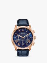 Bulova Mens Wilton Rose Gold Plated Blue Chronograph Dial Leather Strap Watch 97B170 Very well made.