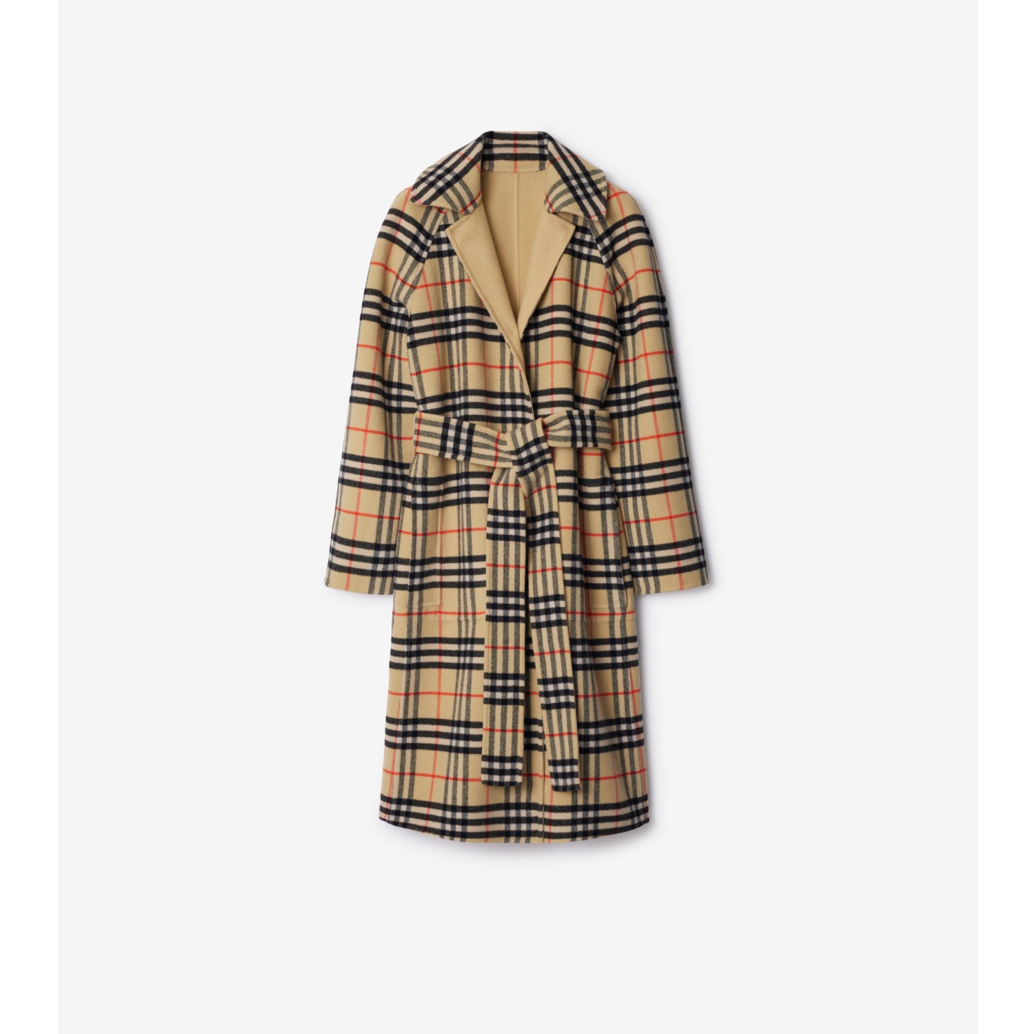 Long Reversible Check Wool Car Coat in Flax Women Burberry Official Very well made.