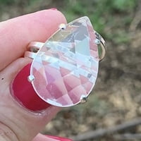 Anillo Facetado de Cuarzo Blanco con forma de gota Very well made.